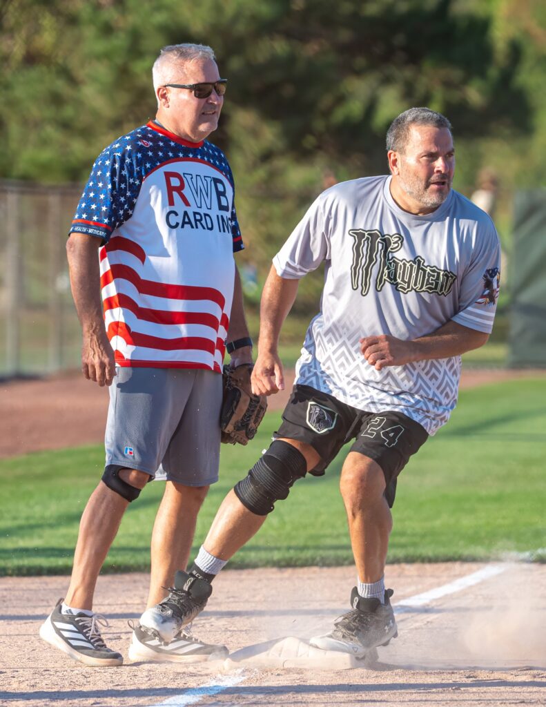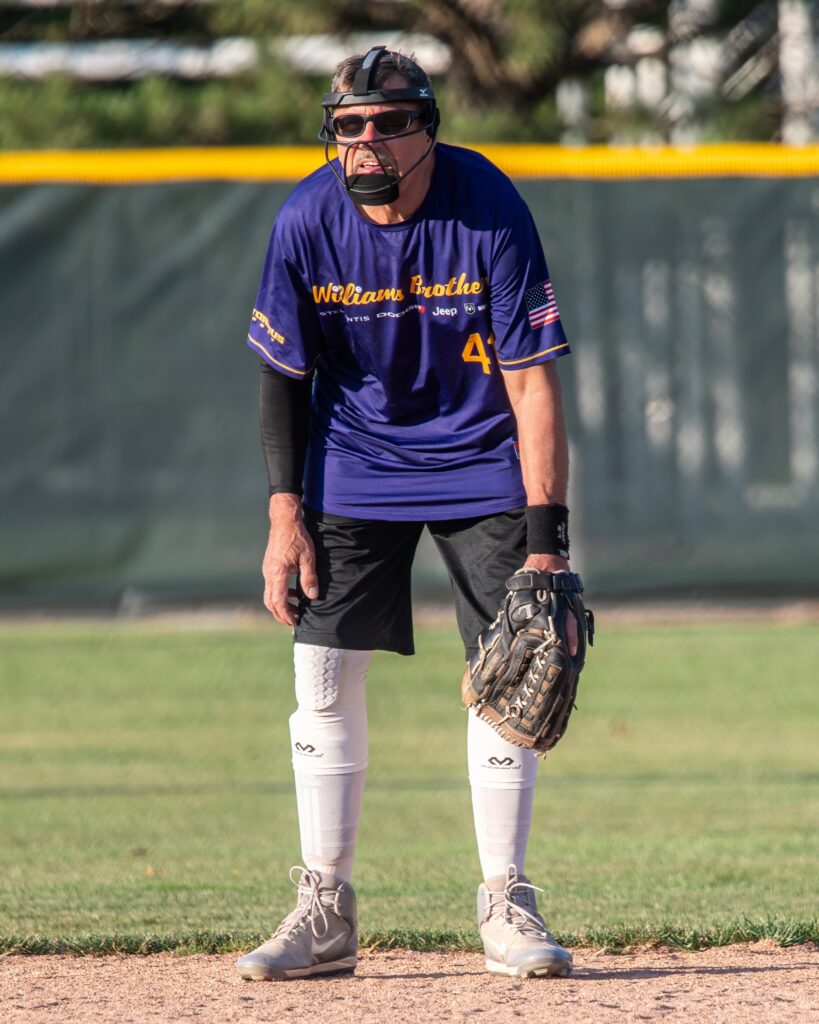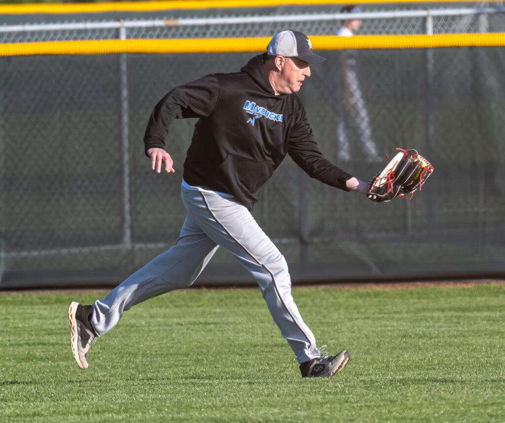 Paul Wesolowski is a jack of all trades – playing infield here, but equally comfortable on the mound. His hitting is pretty darn good too!