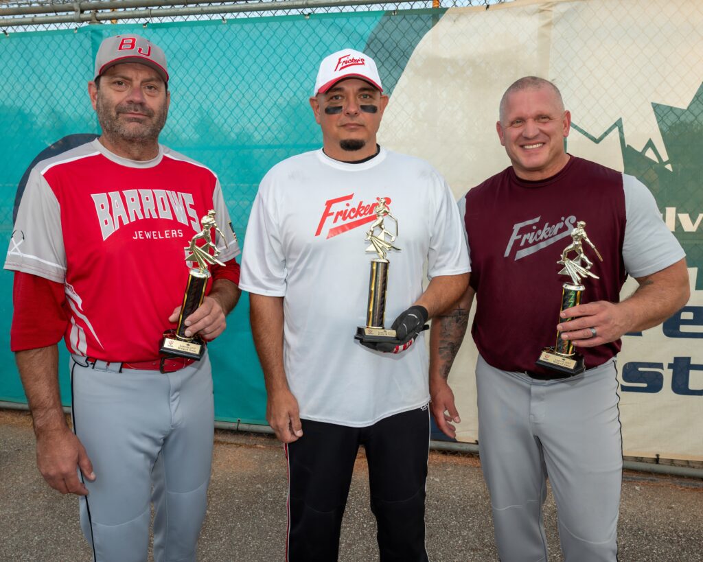 In the semi -finals game, Sidelines was able to pull out a close one against Fricker’s Red 11-8. Defense was on display throughout the game, while the offense did just enough to win and move on to the finals. Offensive leaders were Mike Miller 3-3 with a double and triple, Justin Keller 2-3, Bobby Z 2-3 with an OTFHR, Paul Wesolowski 2-3, Pac-Man 2-3 with a double, Jeff Spotts 2-3, Mel Edmundson 2-4 – with everyone in the lineup collecting at least 1 hit.