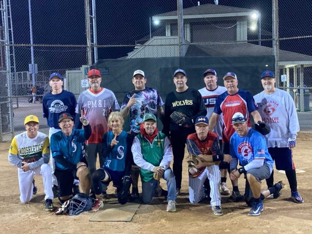 The final game of the Fall season saw two teams that were not in contention to win the Fall league, but still battled hard to the end as Stacker’s United won with a walk off rallying from a 3 run deficit in the final inning. The game was back and forth and ended with the walk off after two home runs tied the game. The Autumn Hunter’s were led in hitting by: Aaron Young 3-3 with two 2b; Sweet Lou McDonald 3-3 with a 2b; Jay Kennedy 2-3 with an OTF HR; Paul Wesolowski 2-3; Gary Gardner 2-3; Jeff Batanian 2-3; Joe Beham 2-2; John Arrington 2-3; Scotty Two Hotty Scott Dheel 2-3; Rick Beham, Paul Cummings and Mike Betley added a hit each. I want to thank my squad as we had perfect attendance as every player made every game (only team to do that) . I love the Fall season as I get to play with my brother Rick, my brother in law Sweet Lou McDonald (is there anyone more happy or positive); my long time buddy Jeff Batanian (who I have played with for over 25 years); The living legend 77 year old Mike Betley and Scotty Two Hotty Scott Dheel (I am joined at the Fall Ball hip with those two). I got to finally play on the same team with the best LC in the game Aaron Young; the hit machine Paul Wesolowski; the sweet leftie John Arrington, the true gentlemen and such an enjoyable and funny teammate Gary Gardner ; the incredible Jay Kennedy (guy hits bombs like he hits the weed lol); and got to meet newcomers Glen Wasliewski and Paul Cummings. Thanks guys for a fun Fall season.